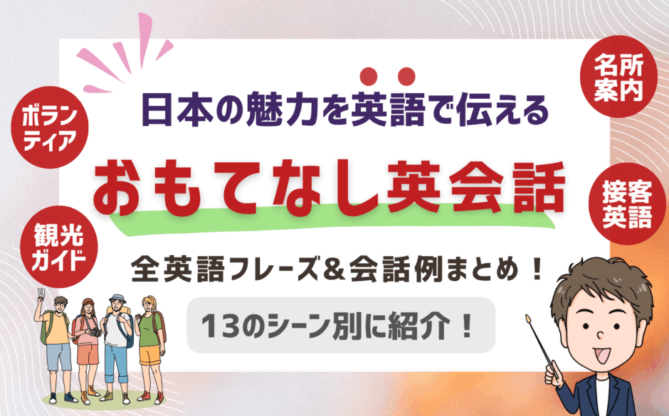 このページでは、日本を訪れた海外のゲストに向けて使える「おもてなし英語」を、以下3つのカテゴリーに分けて13記事をまとめています。