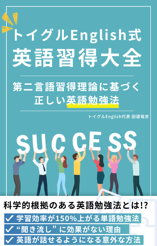 LINEにて「秘密のキーワード」を送っていただいた方にはもれなく、特別電子書籍『トイグルEnglish式 英語習得大全―第二言語習得理論に基づく正しい英語勉強法―』をプレゼントします!